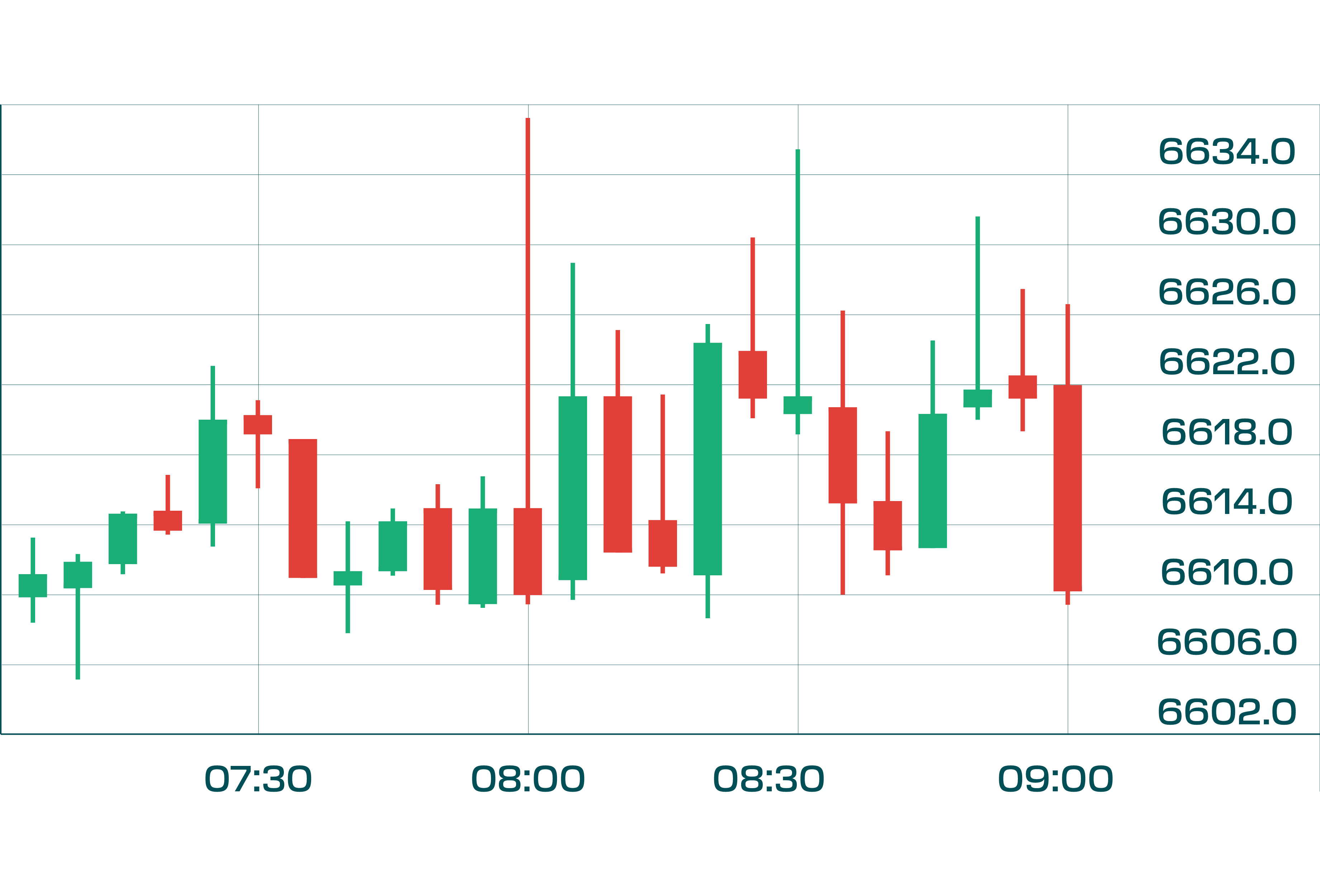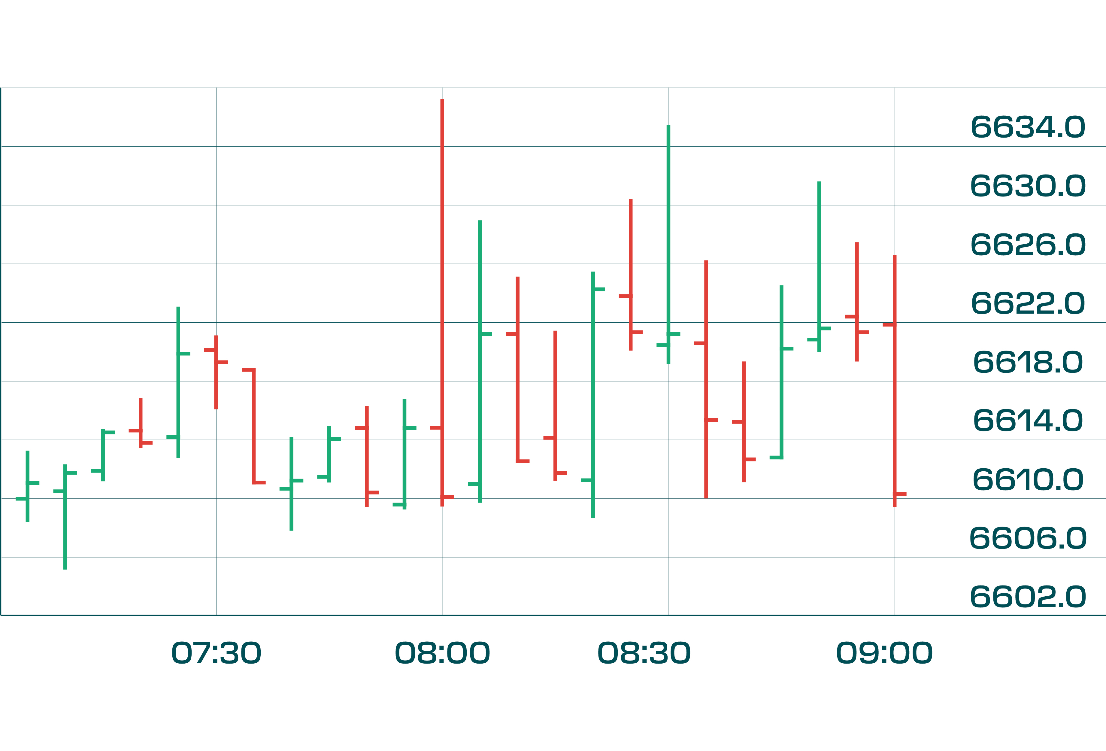 The simplest chart, it connects closing prices over your chosen timeframe (e.g. a line chart of the S&P 500 front-month futures might show each day’s closing price connected to the next). Line charts give a quick overview of the overall trend, but they don’t show intraday swings. They’re useful for stripping out noise and focusing on the bigger picture trend.